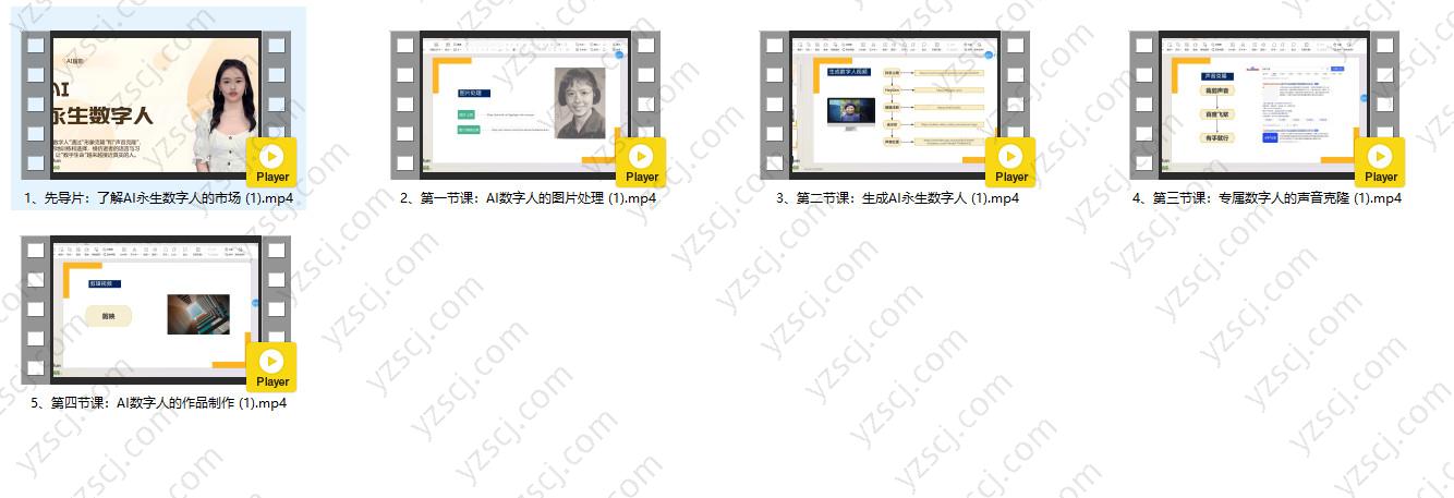 先导片:解析AI永生数字人的市场潜力,了解AI在情感陪伴与纪念领域的应用。第一节课:AI数字人的图片处理学习如何通过AI生成与优化人物照片,打造逼真的数字人视觉形象。第二节课:生成AI永生数字人掌握AI数字人生成技术,了解从模型训练到输出成片的全流程。第三节课:专属数字人的声音克隆使用AI语音合成技术,复刻人物声音,让数字人具备真实语气与情感表达。第四节课:AI数字人的作品制作将声音与画面融合,生成完整的AI数字人视频,实现数字人的“永生表达”。