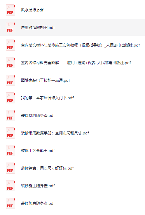 家装装修电子书图书合集,包含图解家装电工一点通、室内装修、装修工艺、户型改造等等相关装修书籍,PDF版电子书资源,夸克网盘资源下载。